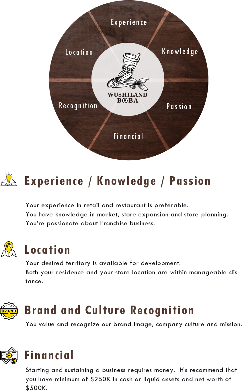 This advertisement is not an offering. An offering can only be made by a Franchise Disclosure Document filed with the referenced state, which filing does not constitute approval. Wushiland Boba franchises will not be sold to any resident of any such jurisdiction until the offering has been exempted from the requirements of, or duly registered in and approved by, such jurisdiction and the required Franchise Disclosure Document has been delivered to the prospective franchise before the sale in compliance with applicable law. The following states regulate the offer and sale of franchises: CA, HI, IN, IL, MD, MI, MN, NY, ND, RI, SD, VA, WA and WI. If you reside in one of these states, you may have certain rights under applicable franchise laws.